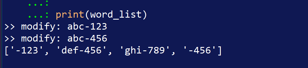 word_list = ['abc-123', 'def-456', 'ghi-789', 'abc-456']