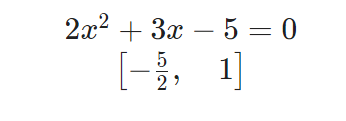 eqn = Eq(2*x**2 + 3*x - 5, 0) # 방정식 (sympy)