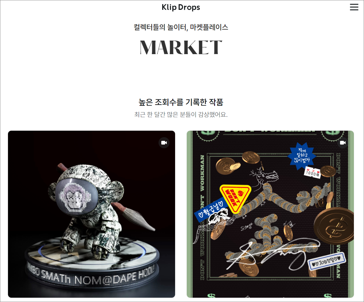 그렇게 구매한 작품들은 클립이라는 지갑을 통해 확인할 수 있고, 현재는 구매한 작품들을 가지고 재판매를 할 수 있는 기능을 열어두진 않았지만 향후 서비스가 확장됨에 따라 마켓플레이스가 생겨날 것으로 보인다.