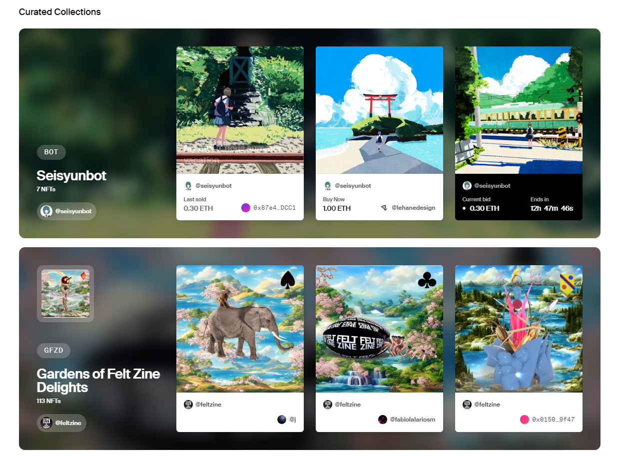 신규 미술 작품의 NFT를 취급하는 마켓플레이스를 중심으로, 수집가들이 서로의 NFT를 거래할 수 있는 2차 마켓플레이스도 운영하고 있다.