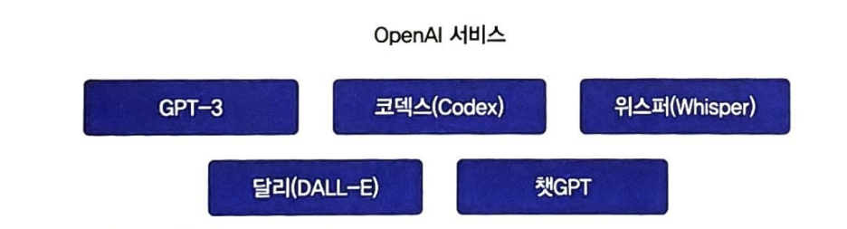 GPT 기술을 활용한 openAI의 서비스는 챗GPT만 있는 것은 아니다. 다음과 같이 챗GPT의 형제로 달리 (DALL-E), 코덱스(Codex), 위스퍼 (Whisper) 등이 있다.