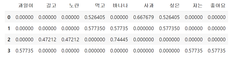 문서-단어 행렬이 곧 단어들의 TF 값을 구한 것임.